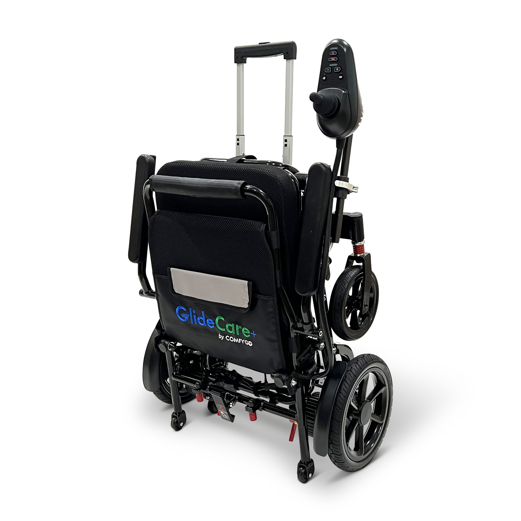 The ComfyGo Glide Care G-5 Pro is an ultra-lightweight, foldable electric wheelchair designed for effortless travel and dependable everyday use. Building on the success of the original G-5, the Pro model features upgraded brushless motors, premium seat materials, and an included wireless remote, offering smooth performance whether operated independently or with caregiver assistance.
