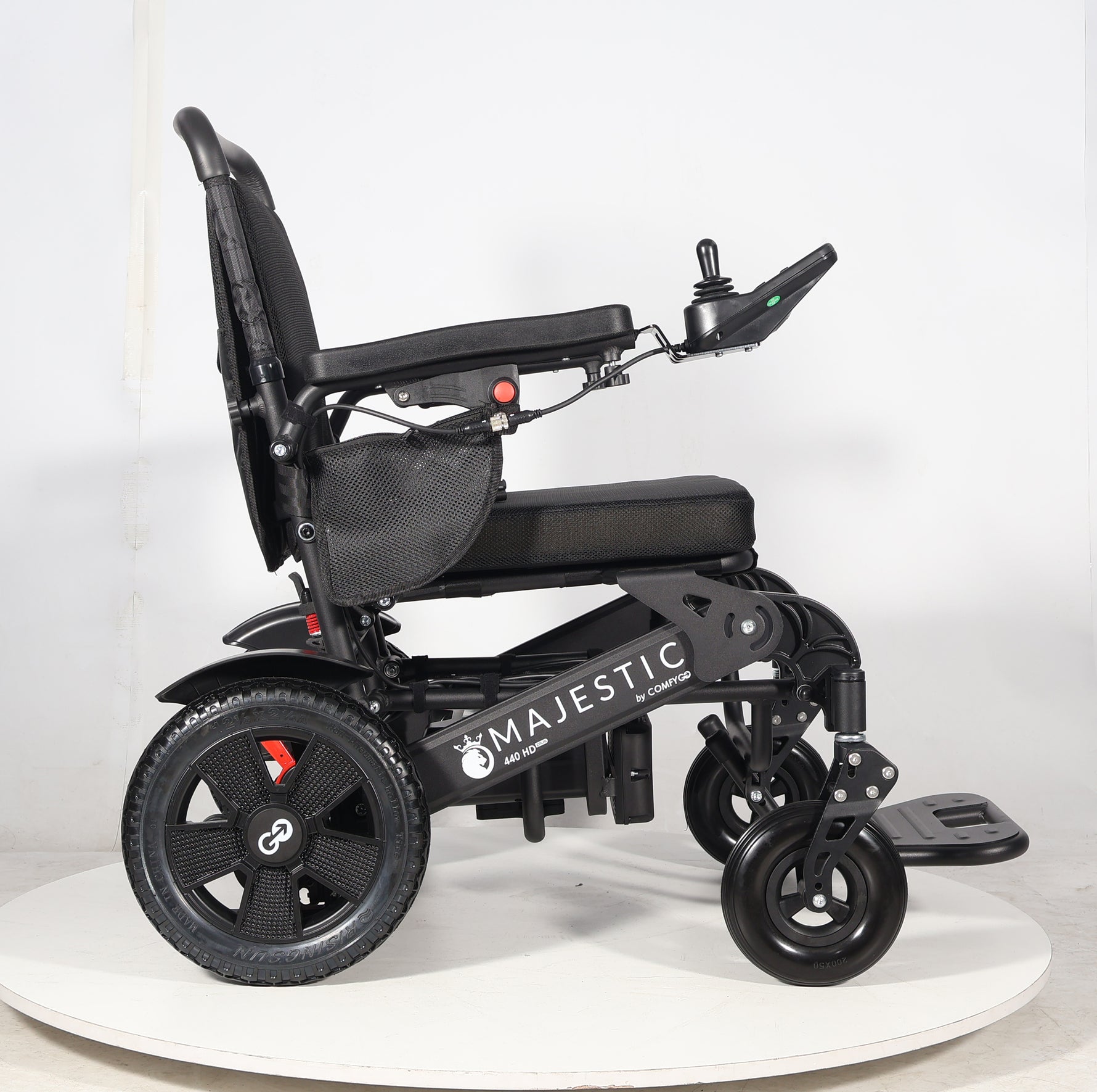 The Majestic 440 HD Plus is a heavy-duty, foldable electric wheelchair built for strength, comfort, and everyday freedom. Designed to support users up to 440 lbs, it combines a lightweight aircraft-grade aluminum frame with powerful dual motors and intuitive controls for a smooth, dependable ride—whether at home or on the go.