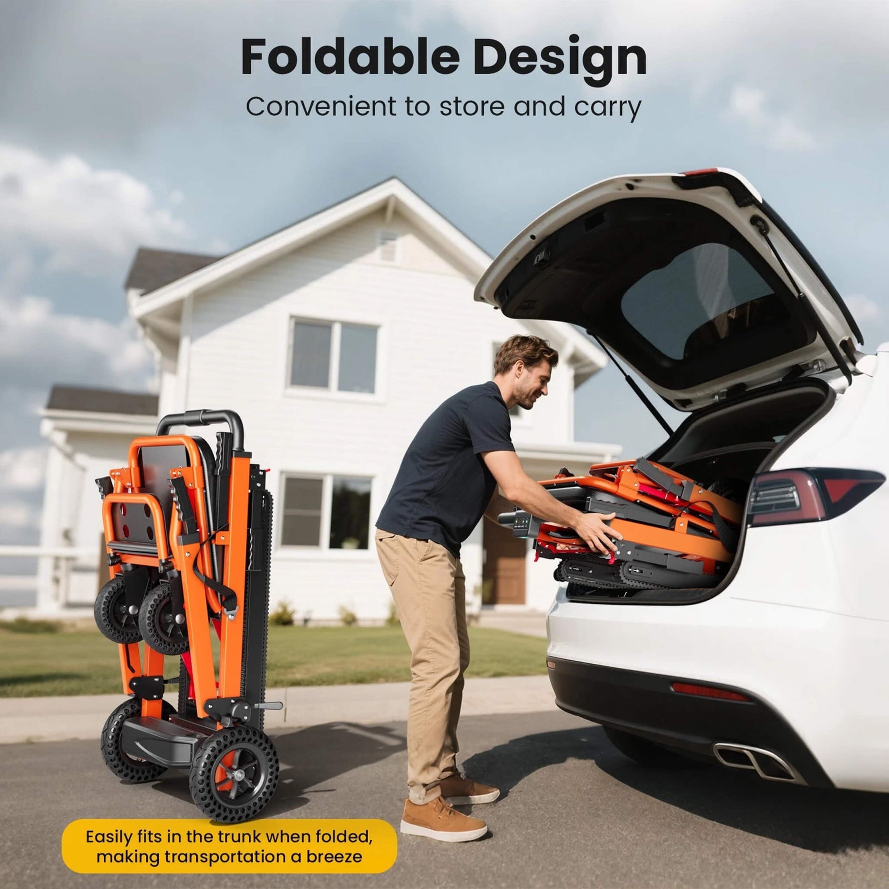 What if you need to travel? The clever, foldable design makes this stair climbing wheelchair incredibly portable! It collapses easily to fit in the trunk of a car, allowing you to take independence and accessibility with you wherever you go. Whether for daily use at home or for visits to friends and family, this chair provides a dependable and convenient way to conquer architectural barriers. Experience the confidence that comes with unrestricted movement.